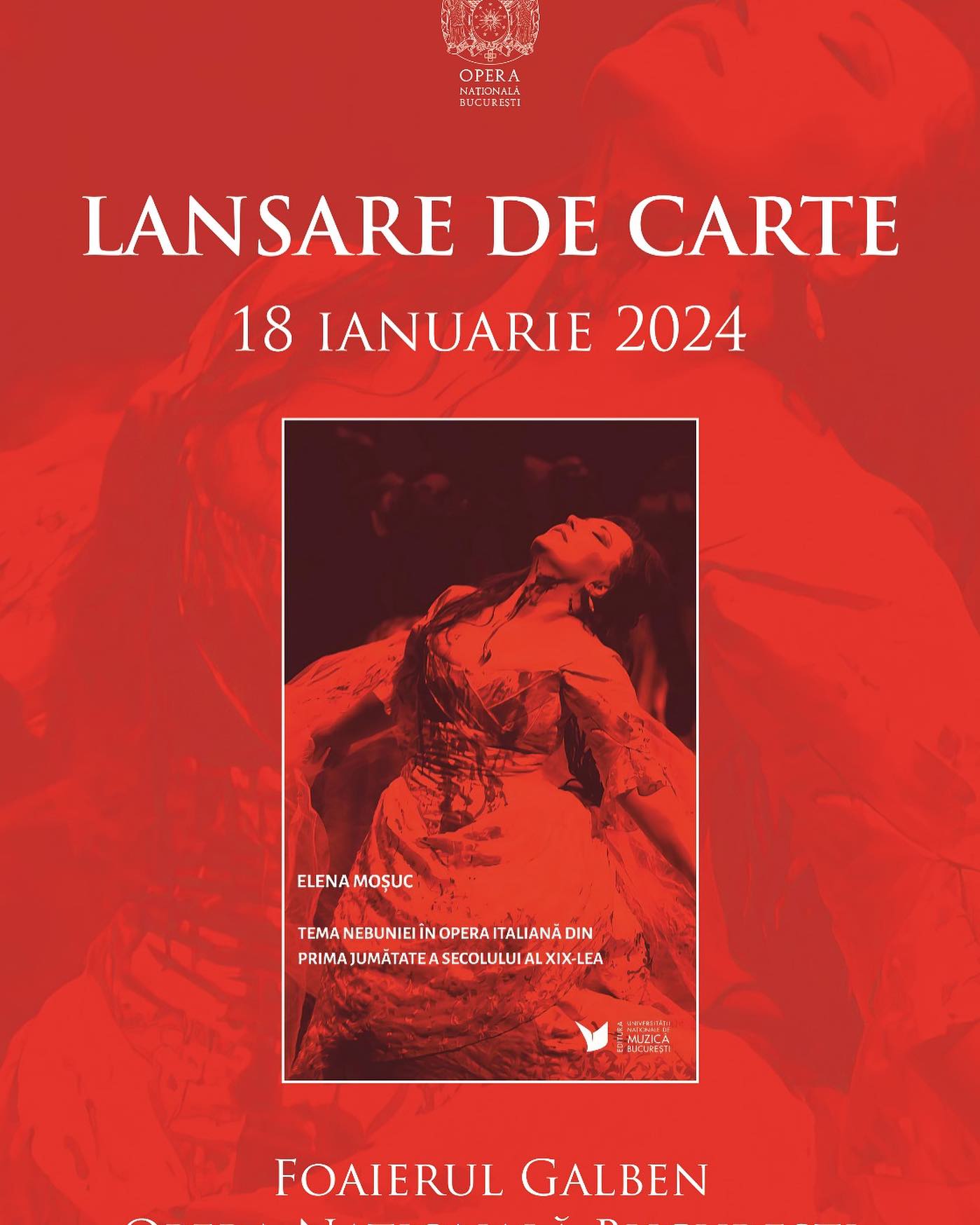 Joi, 18 ianuarie, în Foaierul Galben al Operei Naționale București, după spectacolul La Traviata, publicul s-a putut bucura de lansarea cărții Tema nebuniei în opera italiană din prima jumătate a secolului al XIX-lea, volum publicat la Editura Universității Naționale de Muzică din București în 2023.