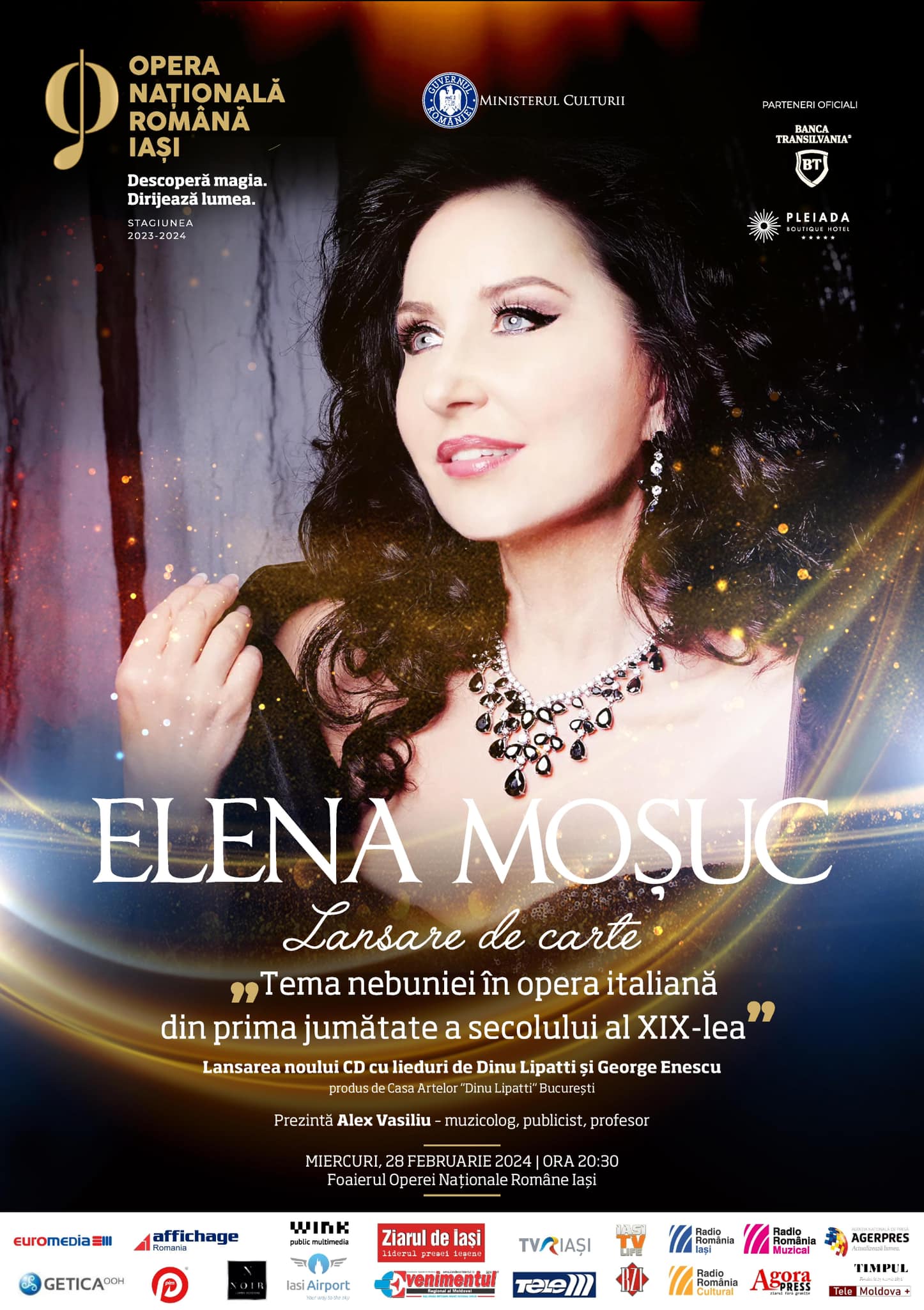 Miercuri, 28 februarie, ora 18:30, în Sala Mare a Operei Naționale Române Iași, soprana Elena Moșuc a susținut un recital extraordinar, acompaniată la pian de Verona Maier. La finalul acestui eveniment, spectatorii au fost așteptați în foaierul Operei, pentru lansarea volumului Tema nebuniei în opera italiană din prima jumătate a secolului al XIX-lea (Editura Universității Naționale de Muzică din București, 2023) și a noului CD al artistei.