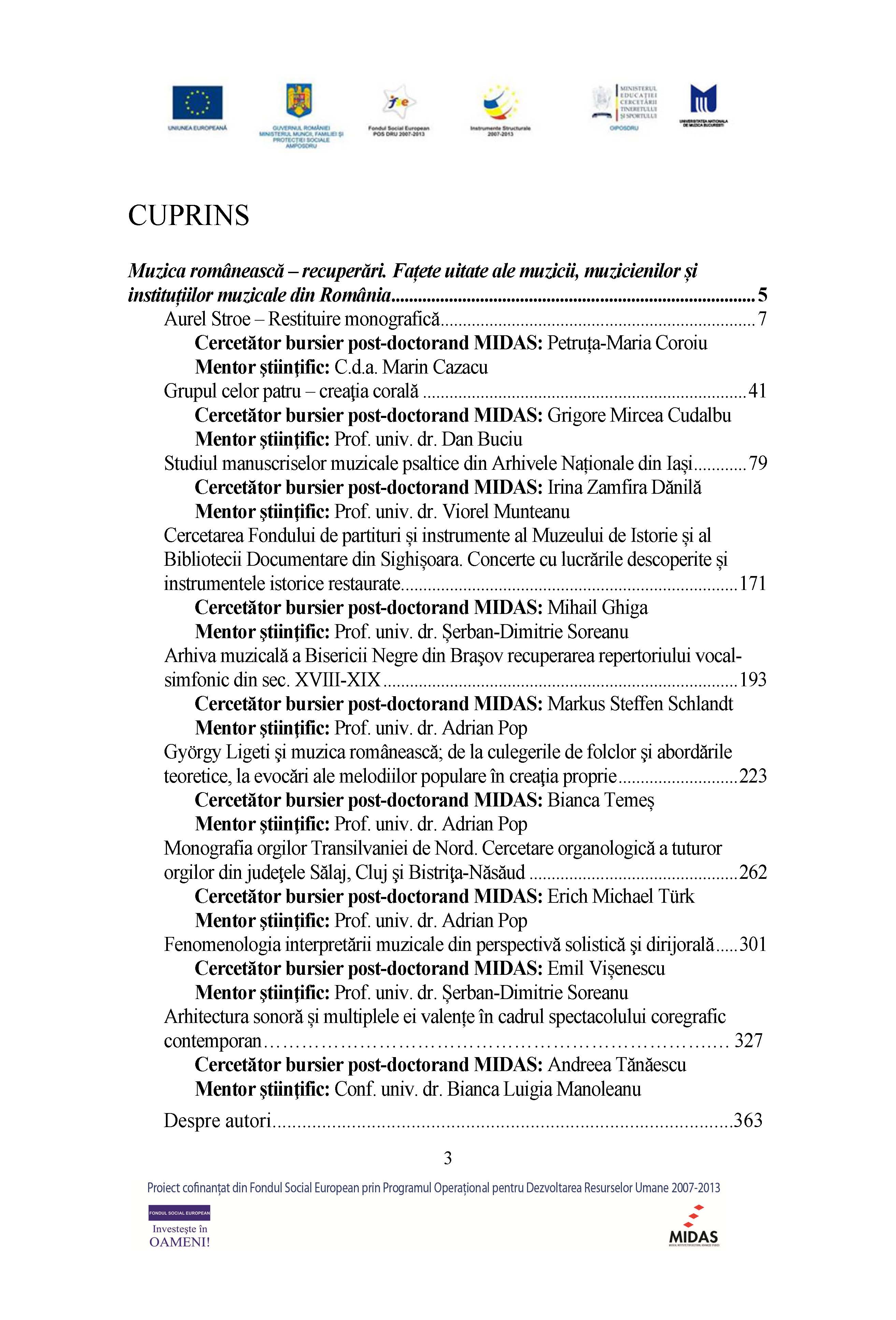 Înființat în Universitatea Națională de Muzică din București ca urmare a câștigării unui concurs de proiecte finanțate din fonduri europene, Institutul de Studii Muzicale Doctorale Avansate MIDAS (Music Institute for Doctoral Advanced Studies) a avut la bază, încă de la început, nevoia de a dialoga a profesioniștilor domeniului muzical din România. Astfel, Universitatea Națională de Muzică din București, în parteneriat cu Universitatea de Arte ”George Enescu ” din Iași, Academia de Muzică ”Gheorghe Dima” din Cluj și Institutul CESPE al Academiei Române au imaginat un proiect care are ca scop întemeierea unui think-tank muzical la București, prin promovarea unui spirit deschis, inovativ, receptiv la schimbările de paradigmă în actualitate, a unui dialog constructiv și eficace în domeniul muzical. Timp de doi ani, între 2011­-2013, Institutul MIDAS intenționează acordarea a 50 de burse post-doctorale pentru cercetătorii români din domeniul muzică. (Dan Dediu)